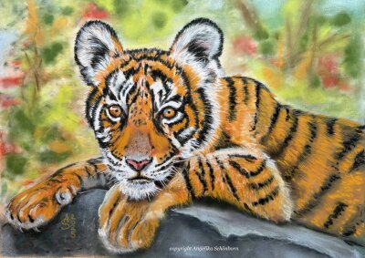 "Junger Tiger, 2025" Pastellkreide auf Pastelmat