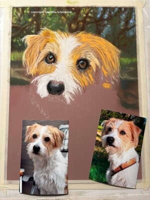 Die Überraschung gelingt und auch Bayou´s Frauchen freut sich über das Bild. Nun wird es in einer Galerie gerahmt werden und einen passenden Platz im Haus finden.