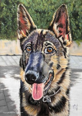"Nelli, Schäferhund" Pastellkreide auf Pastelmat