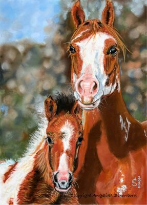"Painthorse- Stute mit Fohlen" Pasellkreide auf Pastelmat